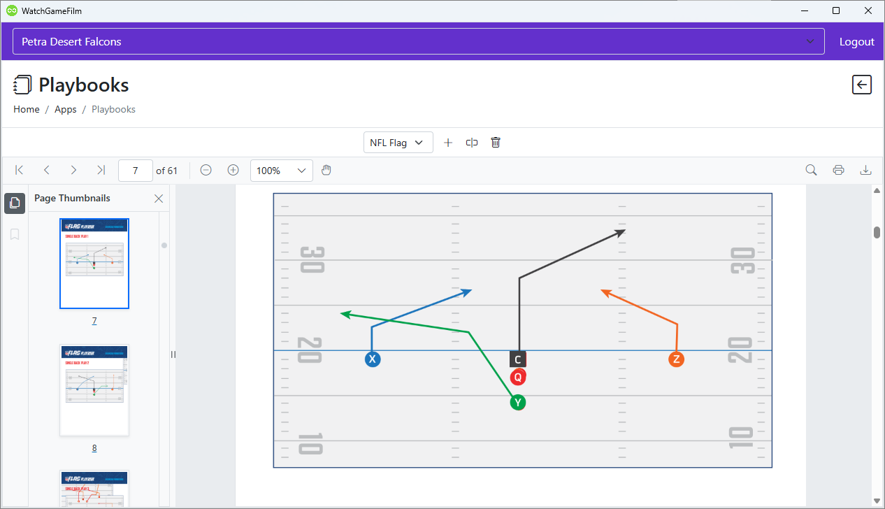 The Playbooks app in WatchGameFilm is part of your team subscription. It is a quick and easy way to bring staff and athletes up to speed and can be used to enhance film breakdown and review.