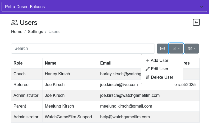 User roles distinguish the various people on your team so you can then customize who has access to what features and capabilities on WatchGameFilm. This means you can allow or restrict specific features and capabilities based on a person's role.